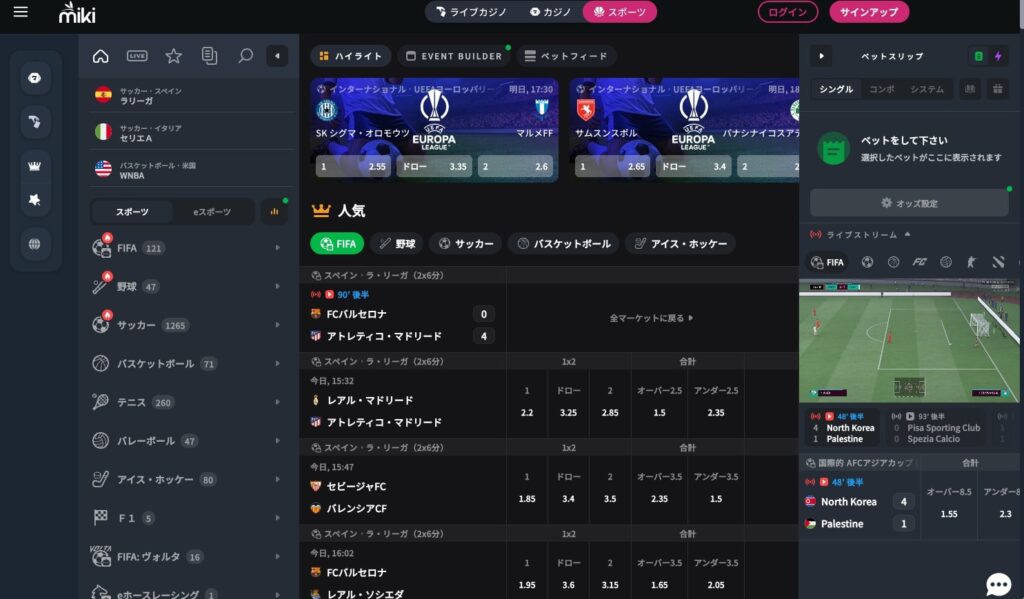 オンラインカジノとスポーツベットのハイブリッド型サイト、Mikiカジノのeスポーツでは、eスポーツのFPSやMOBA、eサッカーやeバスケなど人気のジャンルにベットできます。
